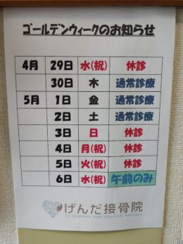GWのお知らせ『5/6(水・祝)午前診療します』